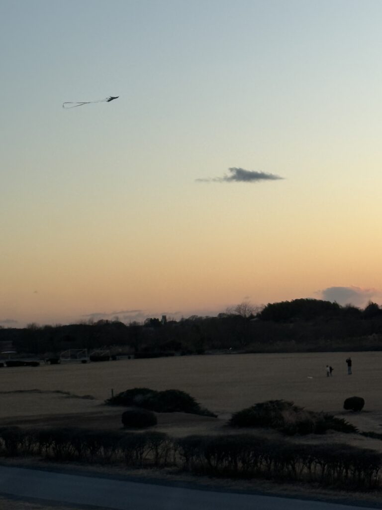 とある道を走っていたら、空高く凧揚げをしている子供たちが🎵