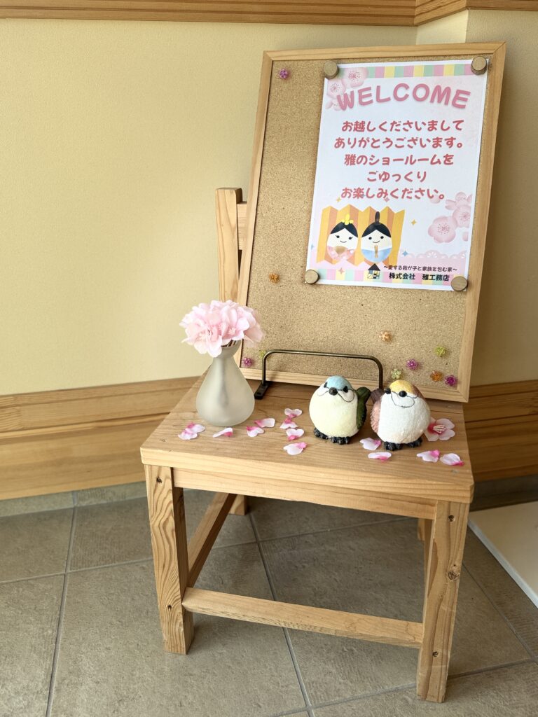 暖かくなってきたので、入り口のご挨拶ポップを交換しました😊