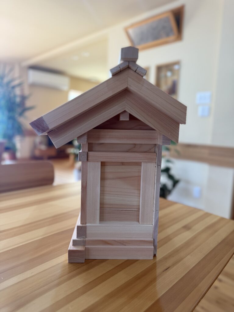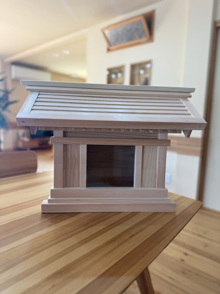 神棚 2026.02.22 お客様より、ご依頼をいただき、神棚を作りました! しっかりとした作りなので、何十年とお客様のもとでお役に立てると思います(*^^*) 施工事例紹介(薪ストーブ オーロラ 夜) 施工事例紹介(脱衣場)