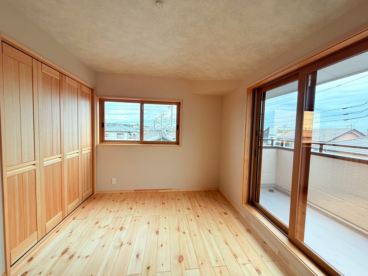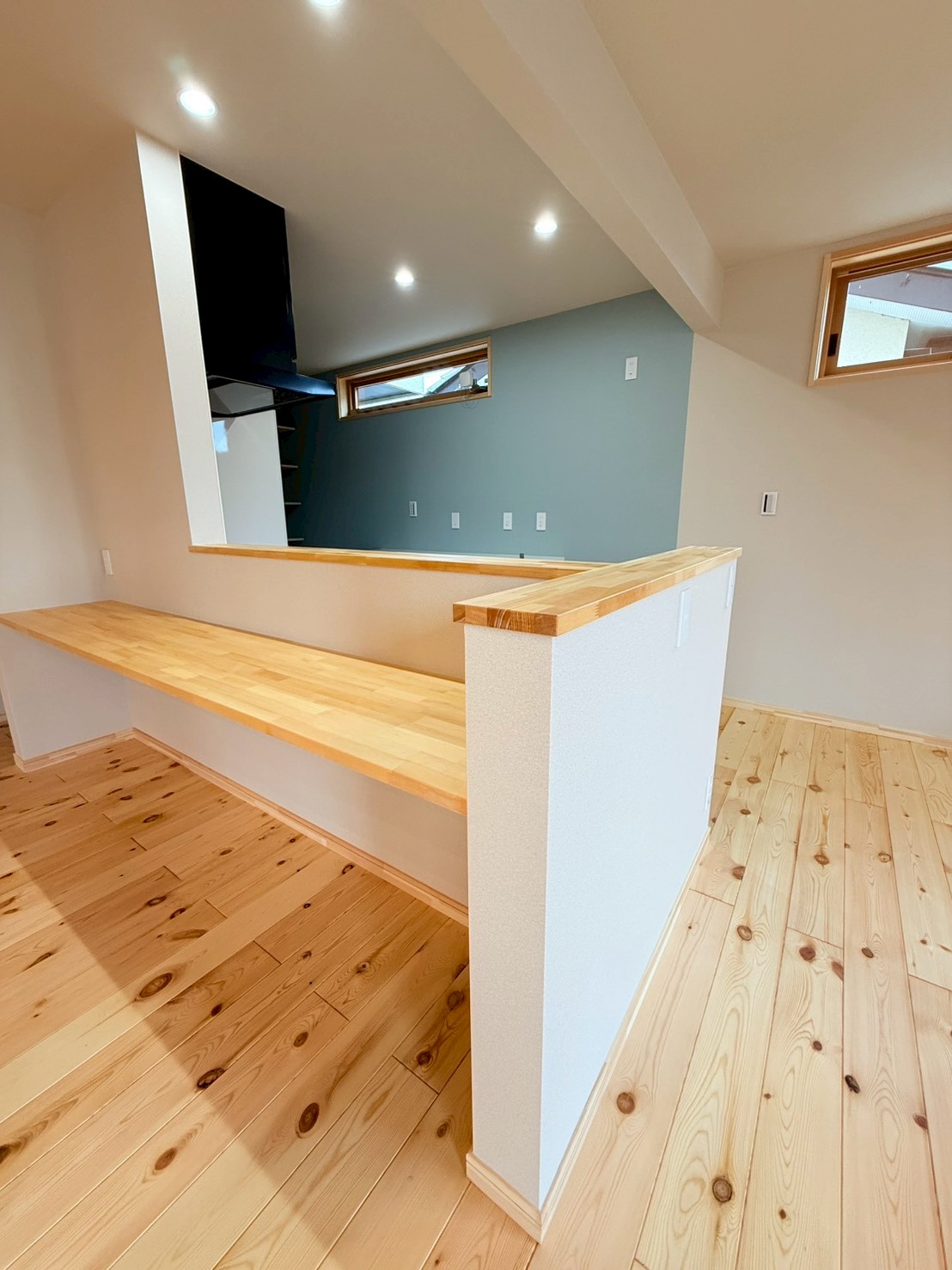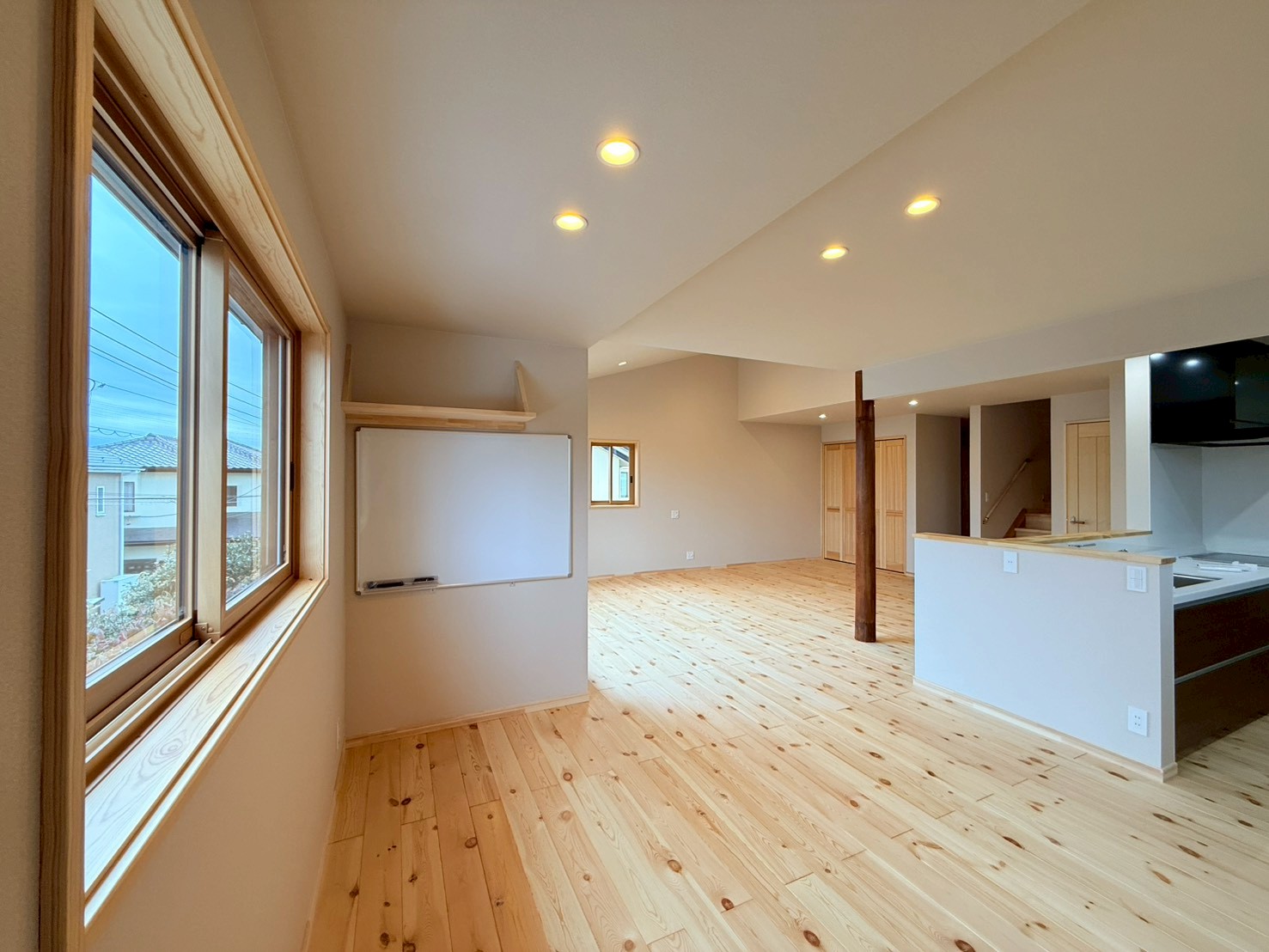 日差しが差し込むリビングは、いつも明るく、無垢の床板も子どもとともに歳月を重ねていきます。10年後、20年後、子どもが大きくなっても、「あ、この床の感触、懐かしい」と自然に思い出がよみがえるそんな家族の時間が静かに積み重なっていく場所へ。