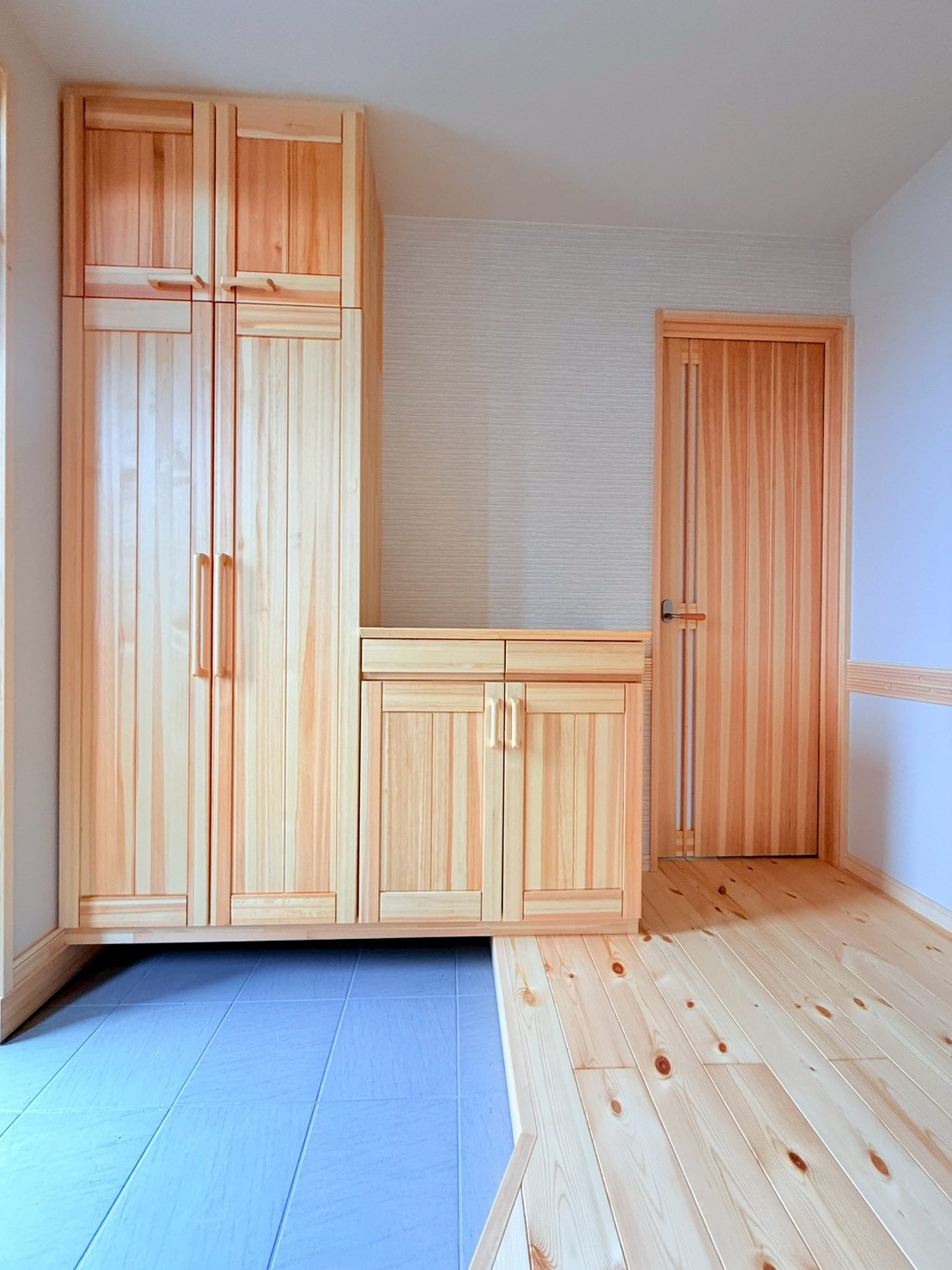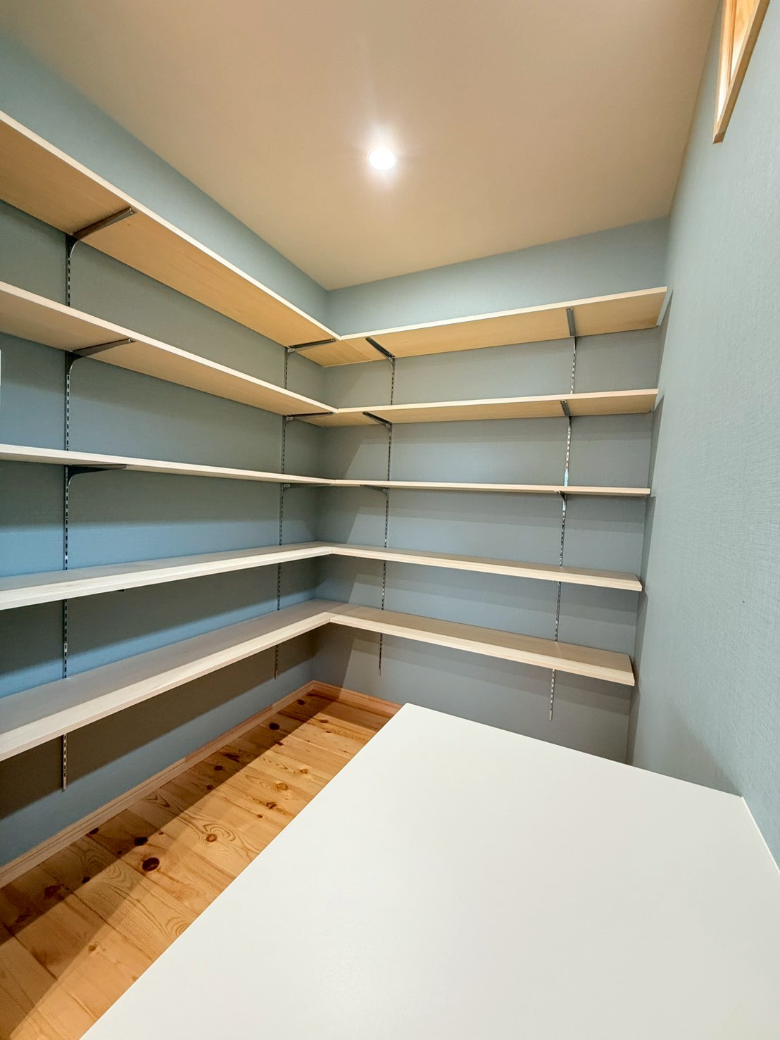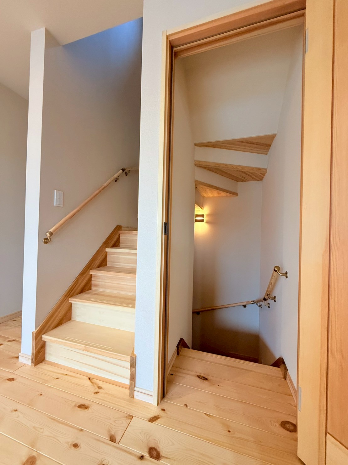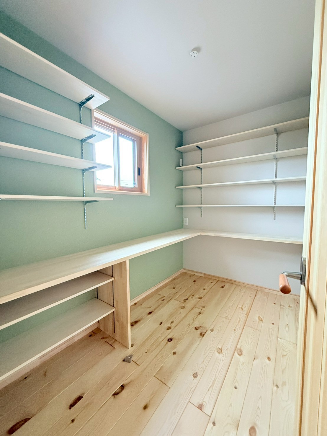 日差しが差し込むリビングは、いつも明るく、無垢の床板も子どもとともに歳月を重ねていきます。10年後、20年後、子どもが大きくなっても、「あ、この床の感触、懐かしい」と自然に思い出がよみがえるそんな家族の時間が静かに積み重なっていく場所へ。
